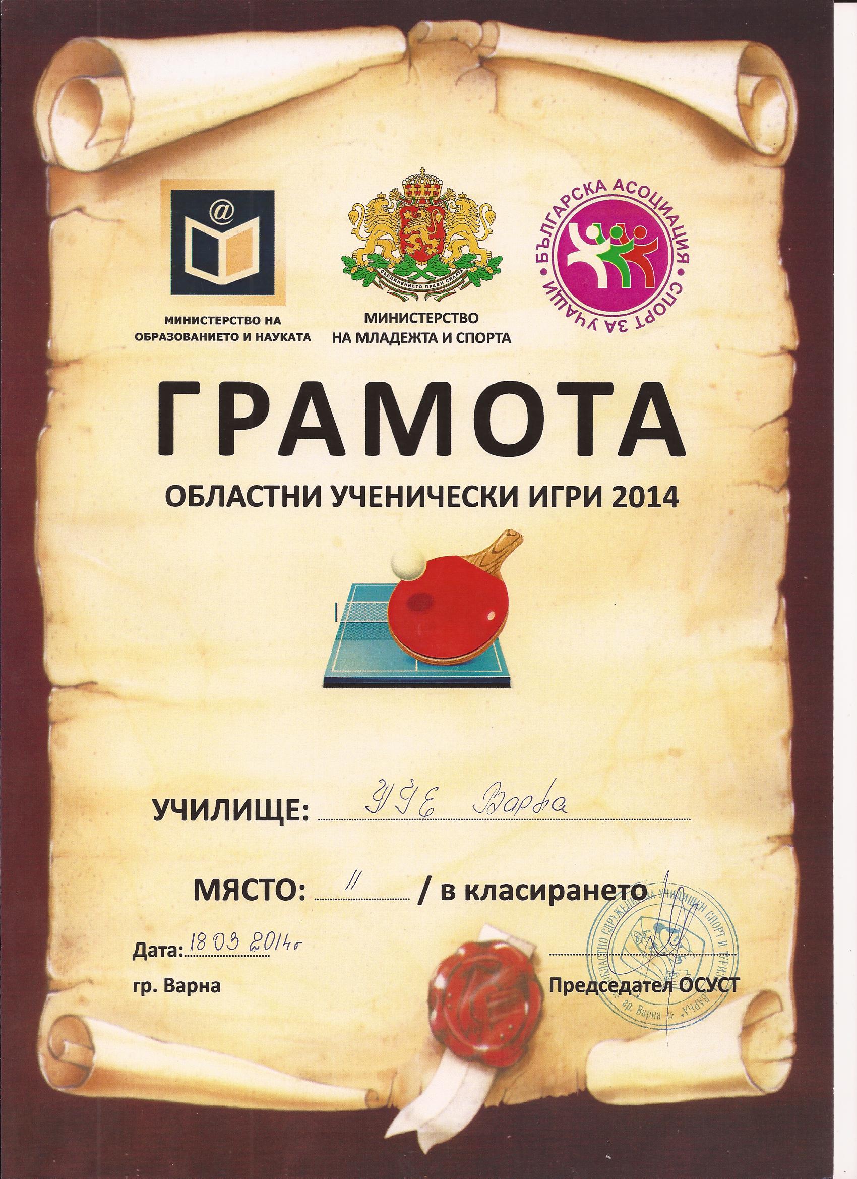 Второ място на областни ученически игри 2014 Варна заеха момичетата ни на Тенис на маса