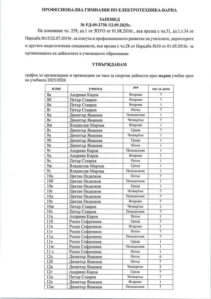 учебната 2025-2026